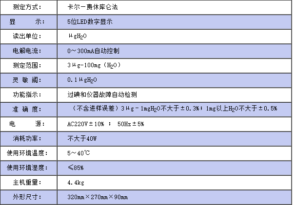 儀器符合GB/T7600;SH/T0246;GB/T606及采用卡爾—費(fèi)休法測定樣品中水分的有關(guān)標(biāo)準(zhǔn)。儀器采用了先進(jìn)的自動控制電路,電解電流自動跟蹤控制,外型結(jié)構(gòu)新穎,增加了過碘指示和儀器故障自動檢測功能,從而使該儀器工作更可靠,使用更方便, 具有分析速度快(一分鐘出結(jié)果)、操作簡便、精度高、自動性強(qiáng)等特點(diǎn),廣泛應(yīng)用于石油、化工、電力、鐵路、環(huán)保等部門。