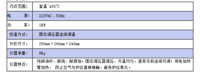 儀器符合GB/T3536;GB/T267;ASTMD92標(biāo)準(zhǔn),適用于測定石油產(chǎn)品的閃點和燃點,但不適用于測定燃料油的開口閃點低于79℃石油產(chǎn)品。儀器采用固態(tài)調(diào)壓器,用調(diào)節(jié)旋鈕調(diào)節(jié)電爐電壓從而實現(xiàn)按標(biāo)準(zhǔn)要求的升溫速度。